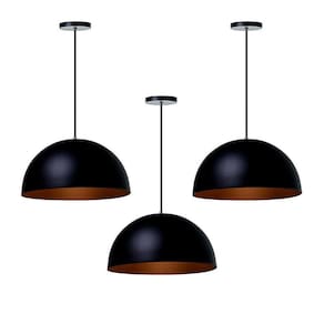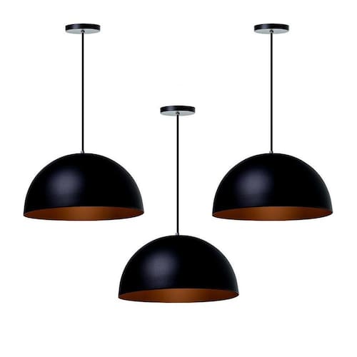 Kit 3 Lustres Pendentes Meia Lua Preto 40 Cm