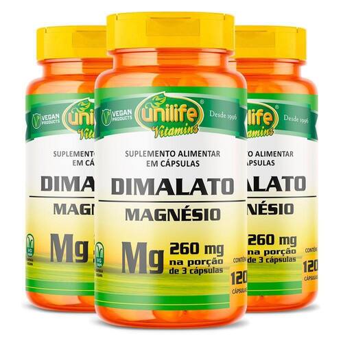 Kit 3 Magnésio Dimalato Unilife 120 Cápsulas