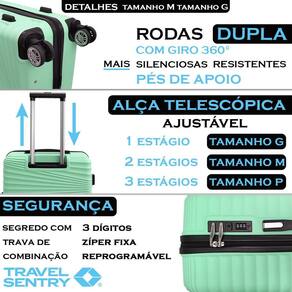 Kit 3 malas viagem e frasqueira em abs notre dame santino Cor: verde Kit 3 malas viagem p m g + frasqueira notre dame santino