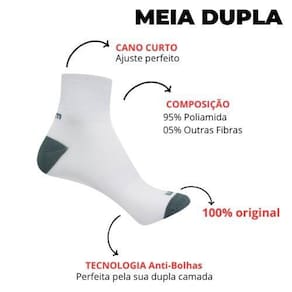 Kit 3 Meias com Dupla Camada Anti Bolhas Corrida Fitnes Rikam Tamanho: 38 - 43 Cor: Descrição Kit com 3 meias, uma de cada cor, conforme foto. Meia cano curto produzida em poliamida, leve e macia. Composição: 95% poliamida, 5% outras fibras. Ideal para caminhadas e corridas, mas pode se tornar indispensável também para quem quer macies e conforto no dia a dia. Com a Dupla camada a parte interna da meia fica em contato com o pé e a parte externa é que faz atrito no tênis, diminuindo consideravelmente o aparecimento de bolhas. Leve e macia, proporciona conforto. Por ser confeccionada com 95% de poliamida, a meia se torna leve e respirável evitando o acumulo do suor. Os tamanhos disponíveis são adequados para a maioria dos pés. Tamanhos: 34 ao 39 ou 38 ao 43. Marca: Não Informado