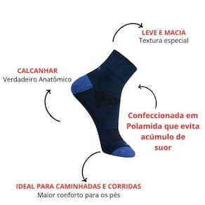 Kit 3 Meias com Dupla Camada Anti Bolhas Corrida Fitnes Rikam Tamanho: 38 - 43 Cor: Descrição Kit com 3 meias, uma de cada cor, conforme foto. Meia cano curto produzida em poliamida, leve e macia. Composição: 95% poliamida, 5% outras fibras. Ideal para caminhadas e corridas, mas pode se tornar indispensável também para quem quer macies e conforto no dia a dia. Com a Dupla camada a parte interna da meia fica em contato com o pé e a parte externa é que faz atrito no tênis, diminuindo consideravelmente o aparecimento de bolhas. Leve e macia, proporciona conforto. Por ser confeccionada com 95% de poliamida, a meia se torna leve e respirável evitando o acumulo do suor. Os tamanhos disponíveis são adequados para a maioria dos pés. Tamanhos: 34 ao 39 ou 38 ao 43. Marca: Não Informado