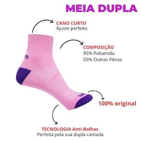 Kit 3 Meias com Dupla Camada Anti Bolhas Corrida Fitnes Rikam Tamanho: 34 - 39 Cor: Descrição Kit com 3 meias, uma de cada cor, conforme foto. Meia cano curto produzida em poliamida, leve e macia. Composição: 95% poliamida, 5% outras fibras. Ideal para caminhadas e corridas, mas pode se tornar indispensável também para quem quer macies e conforto no dia a dia. Com a Dupla camada a parte interna da meia fica em contato com o pé e a parte externa é que faz atrito no tênis, diminuindo consideravelmente o aparecimento de bolhas. Leve e macia, proporciona conforto. Por ser confeccionada com 95% de poliamida, a meia se torna leve e respirável evitando o acumulo do suor. Os tamanhos disponíveis são adequados para a maioria dos pés. Tamanhos: 34 ao 39 ou 38 ao 43. Marca: Não Informado