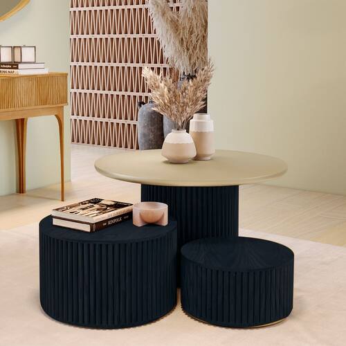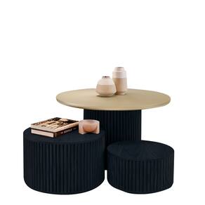 Kit 3 Mesas Decorativas Lua em Madeira Maciça - Ébano - Preto