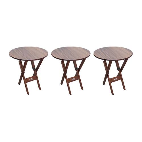 Kit 3 Mesas Dobráveis De Madeira Redonda 70cm Imbuia - Tarimatã A Mesa redonda dobrável é ideal para bares, restaurantes, estabelecimentos, áreas de lazer e também para sua casa. Em madeira maciça tornando resistente e durável. Seu design permite ser encaixado em qualquer ambiente, trazendo um toque a mais para seu estabelecimento. Além de sua durabilidade, o que lhe trará conforto para servir seus clientes. Por ser dobrável torna-se mais fácil guardar, manusear e limpar o produto.