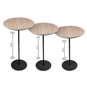 Possuem tampo com 30 cm de diâmetro, espessura de 18mm em MDF Duratex no revestimento melamínico BP – Amadeirado Itapuã de altíssima resistência, usinado em centro CNC produzindo um corte perfeito e bordas chanfradas.