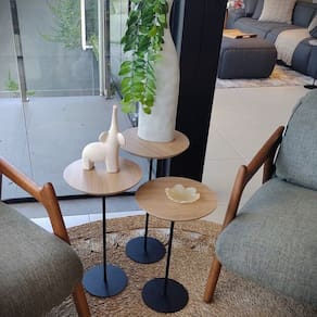 Bases em aço carbono cortadas a laser, 5 banhos desengraxantes e protetores, aplicação de pintura eletrostática em pó e após, passagem por um forno de aquecimento em altíssima temperatura (400°) para melhor proteção e durabilidade. Acabamento da Base: Pintura Acabamento do Tampo: BP Ambiente Principal: Sala de Estar Complexidade da Montagem: Baixa: pode ser montado por uma pessoa sozinha Cor: Amadeirado/Preto Cor do Produto: Amadeirado/Preto Dobrável: Não Escala de Brilho: Semi-Brilho Espessura do Tampo: 18 mm Extensível: Não Informações Complementares: Atributos e Benefícios: Montagem e ou desmontagem extremamente fácil e rapidíssima; em torno de 60 segundos, observando sempre os três passos conforme ilustrados no nosso Manual Prático de Montagem que acompanha nossas Criações. Caso necessite levar nossa Itens Inclusos: 3 mesa desmontada, com suas devidas proteções e 1 manual prático de montagem. Linha ou Coleção: Coleção Manual de Especificação Técnica: https://product-hub-prd.madeiramadeira.com.br/968751/documents/0efe45a1-6735-4544-a644-f33e865958122529745564017305982079676.pdf Manual de Montagem e Instalação: https://product-hub-prd.madeiramadeira.com.br/968751/documents/b4751390-c885-47ed-8439-b66fe8e4c2d22529744564017305981914915.pdf Marca: Ava Mobiliário Material da Base: Aço Material do Tampo: MDF Material Principal: MDF Medida do Tampo (L x C x E): Diâmetro de 0,30 cm x 18 mm Necessita Montagem: Sim Origem do Produto: Nacional Peso: 3,1 kg Possui Base: Sim Possui Espelho: Não Possui Possui Gavetas: Não Possui Portas: Não Possui Prateleiras: Não Possui Rodízio: Não Possui Suporte Giratório: Não Recomendações de Uso, Manutenção e Limpeza: Mesa lateral, mesa de apoio, mesa de cabeceira ou, em ambientes em que possa ser útil e funcional. Evitar exposição externa ao sol e chuva. Para limpeza orientasse utilizar uma flanela levemente umedecida em 50 % de água morna e 50 % de alcool 70%. Após, passar uma flanela seca. Sistema de Montagem: Emborcar o tampo sem a retirada da proteção de borda, em seguida rosquear levemente a haste a flange do tampo e posteriormente rosquear o disco da base na parte superior da haste e aplicando um leve aperto ao final do movimento. Após, retirar a proteção e Suporta Até (kg): 20 kg Marca: Ava Mobiliário