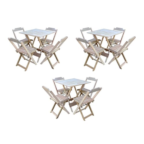 Tipo: Kit 3 Jogos de Mesa 4 Cadeiras Modelo: Dobrável Cor: Crua