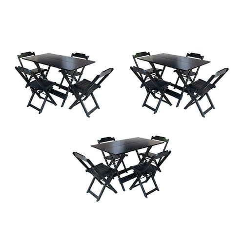 Kit 3 Mesas Retangulares Dobraveis Em Madeira Maciça 120x70 Com 4 Cadeiras - Preto - Cor: Preto