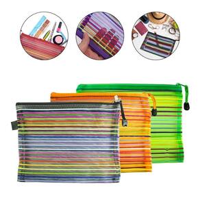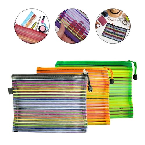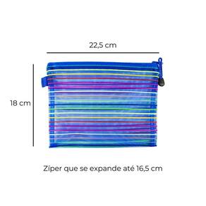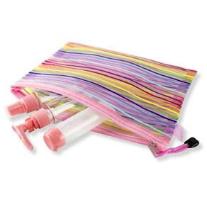 Características principais: - tecido de nylon levemente transparente; - necessaire com listras coloridas; - zíper com alto acabamento e roforço; - multiuso; - perfeita para todos os dias; - cabe em todos os tipos de bolsas, malas e mochilas; - prática; - acabamento de alta qualidade; - indispensável em qualquer rotina.