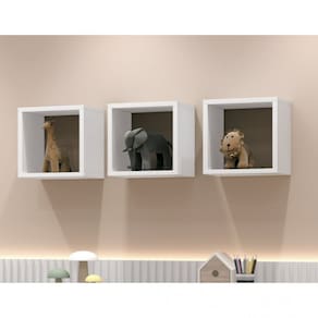 O Kit de Nichos Trilho Juju é composto por 3 nichos, um acessório versátil, delicado e completo, ele é Ideal para organizar ou decorar o quartinho do seu bebe. O tamanho é 30x30 e 20cm de profundidade.