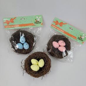 Kit 3 Ninho Decorativo Com 3 Ovos De Páscoa Enfeite Páscoa kit com 3 Ninhos de Cipó com Ovos Decorativos - Elegância e Sofisticação para Sua Decoração