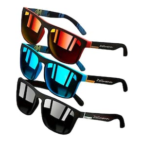 Kit 3 óculos De Sol Masculino Polarizado Square - Azul + Vermelho + Preto