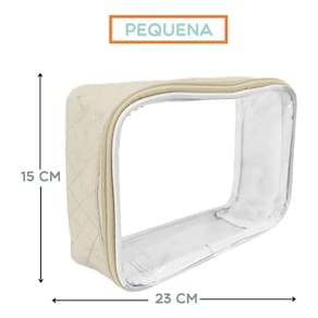 Kit Organizador Para Malas De Bebe - 3 Peças - Bege Neutro Feito para organizar a mala maternidade, malas para passeios e viagens do bebê da melhor forma possível, os tamanhos são essenciais para organização, a transparência do plástico deixa organizado para as trocas de roupas do seu pequeno a . Tamanho perfeito, ótima costura, não solta tinta, plástico super reforçado. Resistente, durável e impermeável, amplo espaço para melhor armazenamento, prático e higiênico de todos os itens do bebê, fechamento em zíper. Acabamento premium Matelassê Medidas dos Organizadores: Pequena: 26 cm X 16 cm X 8 cm Média: 30 cm X 26 cm X 9 cm Grande: 34 cm X 30 cm X 11 cm Composição do Produto: 80% PVC - 20% Poliéster Exclusivo Marca Best Sling do vendedor: 1 meses