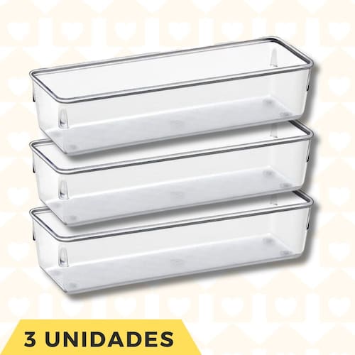 Esses organizadores são perfeitos para setorizar suas gavetas. Você compõe conforme os itens que serão organizados, além de serem empilháveis para otimizar o espaço utilizado e modulares para que você defina o tamanho e a quantidade que necessita para organizar melhor o seu ambiente. São ideais para temperos, materiais de escritório, gavetas e outros objetos pequenos. Em plástico de alta qualidade, transparente para facilitar a visualização dos objetos.
