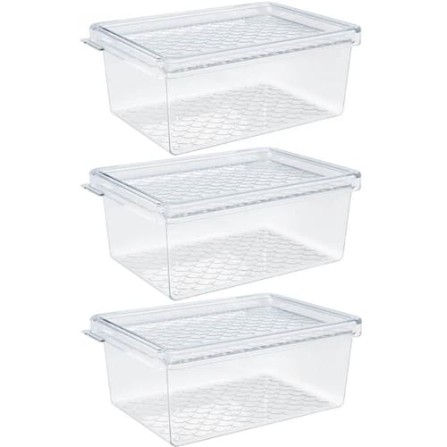 Kit 3 Organizadores de Geladeira com Tampa 660ml cada Cozinha Multiuso Frutas Transparente UZ.