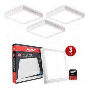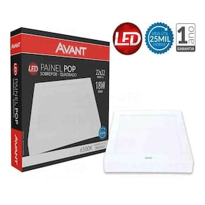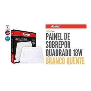 Painel Led Sobrepor Quadrado 18W 6500K Bivolt Branco Frio Avant 768101372 A Mobilar Eletro esta no mercado ha mais de 25 anos inovando em produtos e atendimento estabelecendo uma relacao de confianca! A linha de painel pop sobrepor e indicada para instalacoes diretamente sobre a caixa de passagem, em superficies de alvenaria ou concreto. Compre agora mesmo com a Mobilar Eletro! Caracteristicas do produto: Temperatura ambiente: -5?C a 40?C. Tensao nominal: 100V a 240V. Fator de potencia:>0,50. Baixo consumo de energia. Possui transformador eletronico isolado. Fluxo luminoso constante em toda faixa de tensao. Tipo de instalacao: Sobrepor. Corpo em aluminio e difusor em policarbonato. Especificacoes Tecnicas: Potenca: 24W Fluxo Luminoso: 1680lm Eficiencia Luminosa: 70lm/W Angulo de abertura: 120? Temperatura da cor: 6500K Dimensoes: 22x22 Outras Informacoes> Tensao Eletrica: 110/220V - Bivolt> Indice de Protecao: IP20> Tipo do material: Aluminio e Policarbonato> Fluxo Luminoso: 1260 lumens> Angulo de Abertura: 120o> IRC:>70> Baixo consumo de energia> Vida Util: 25 mil horas Conteudo da Embalagem: 01 Painel Led Sobrepor.
