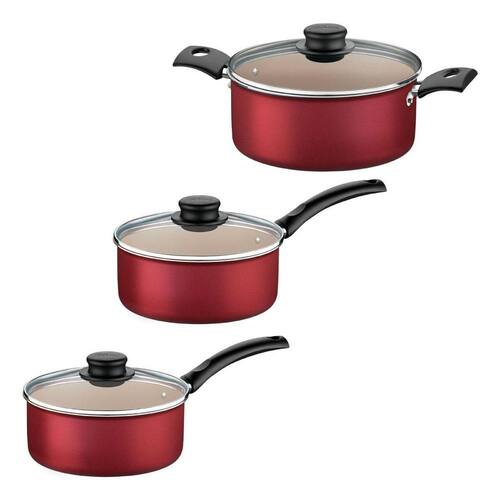 Kit Com 3 Panelas Antiaderente Tampa de Vidro 16 Cm, 18 Cm e 20 Cm Tramontina Turim Vermelho