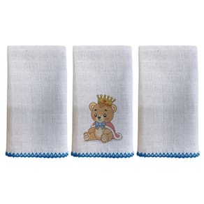 Kit com 3 unidades, sendo 2 Lisos Branco e 1 Bordado Bainha em crochê feito a maquina não desfia Composição: 100% algodão, tecido fralda Tecido quadriculado Tamanho: 33cm x 33cm Fabricação própria