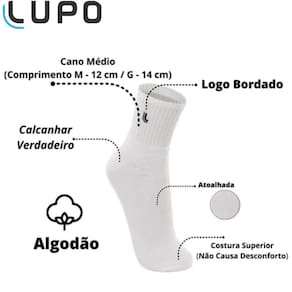 Kit 3 Pares Meias Lupo Cano Médio Unissex 03148 Nome: Preta M Kit 3 Pares Meias Lupo Cano Médio Unissex, confeccionado em algodão super macio, respirável e confortável. Indicado para o uso casual e também para atividades esportivas, garantem maior conforto e ajuste perfeito no pé, proporcionando uma sensação leve e suave. Alta tecnologia e calcanhar verdadeiro. - Marca: Lupo - Modelo: Meia Cano Médio - Referência: 01348 - Contém 03 pares - Cores - Unissex - Tecido com ventilação - Composição: Algodão 79%, poliamida 18% e Elastano 3%. Marca: Não Informado