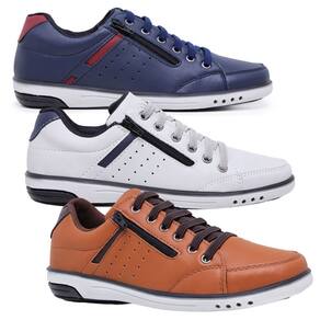 Kit 3 Pares Sapatênis Masculino Fechamento Elastico e Ziper - 42 - Laranja