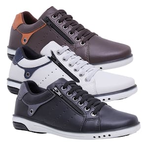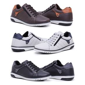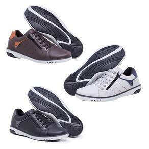 Kit 3 Pares Sapatênis Masculino Fechamento Elastico e Ziper - 45 - Marrom Chocolate