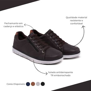 Desenvolvido para alinhar o conforto e praticidade. Seu ajuste que gera o encaixe perfeito aos pés e seu fechamento facilita o calçar. Desenvolvido para o homem moderno com modelos e cores que combinam com as principais ocasiões. O modelo perfeito para alinhar conforto e estilo para o dia a dia no trabalho. Feito com material sintético de ótima qualidade e palmilha confortável.