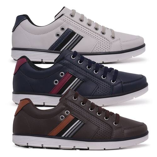 Kit 3 Pares Sapatenis Masculino Ziper Cadarço Confortável - 43 - Azul Petróleo