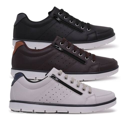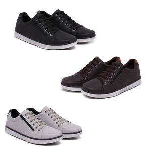 Kit 3 Pares Sapatenis Masculino Ziper Cadarço Confortável - 44 - Marrom Chocolate
