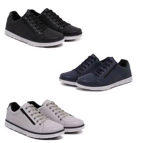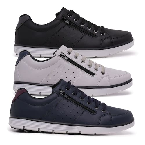 Kit 3 Pares Sapatenis Masculino Ziper Cadarço Confortável - 37 - Preto