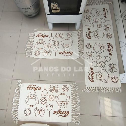 Kit 3 Passadeira Rosa De Cozinha Corredor Estampa Geométrica Tecido Grosso Tear Nozinho 100% Algodão Modelo Coruja