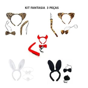 Medidas aproximadas: Tiara: 13cm x 19cm Gravata: 11cm x 5cm Cauda: 30cm Tamanho Único (Adulto ou Infantil) Produto Importado