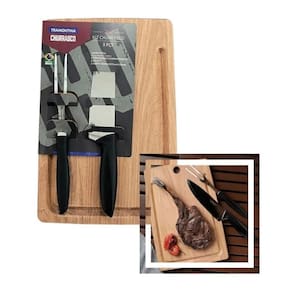 Kit churrasco tramontina 3 peças com lâminas em aço inox e tábua de madeira - qualidade, estilo e praticidade para o seu churrasco