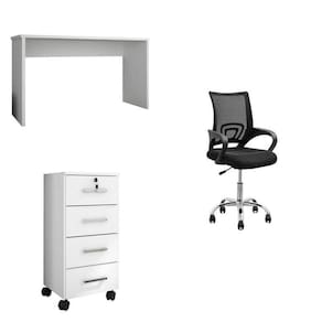 Prático e versátil, o gaveteiro e a mesa gávea podem ser utilizados em vários ambientes, indo do escritório ou local de estudo. Produto todo em MDP 15 mm com 4 gavetas sendo 1 com chave e rodízios para fácil movimentação.