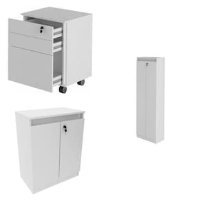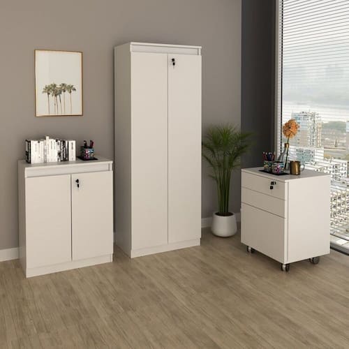 O Armário alto para escritório ME4151 é produzido em MDP 15mm contém 2 portas e 3 prateleira. Excelente opção para Organização e praticidade para seu escritório, com chave nas portas, para guardar documentos com mais segurança. Acabamento: BP Altura do Conjunto: 160.5 cm Ambiente: null Ambiente Principal: Escritório Cor: Branco Informação Complementar: 1x Gaveteiro com Chave 3 Gavetas Charme Branco Largura: 48,8 cm Altura: 64,5 cm Peso: 19,15 kg Profundidade: 43 cm Necessita Montagem: Sim