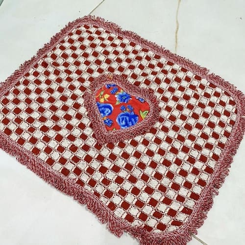 Kit 3 Peças De Tapete Banheiro Algodão 100% Tamanho 50x40cm Para Piso Chão Estampado E Liso Vermelho Com Estampa