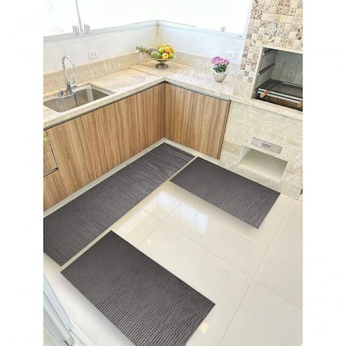 Design Moderno e Toque Agradável para sua Rotina Com visual discreto e acabamento bem definido, as peças se integram facilmente à decoração da cozinha, oferecendo um toque a mais de elegância ao ambiente. O material emborrachado também ajuda a absorver o impacto dos pés, tornando o uso diário mais confortável.