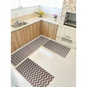 Composição do Kit:- 1 Passadeira de 0,50 x 1,50 m perfeita para frente da pia ou bancadas maiores- 2 Tapetes de 0,50 x 0,75 m ideais para frente do fogão e da geladeiraAs três peças combinam entre si, formando um conjunto harmonioso que protege o piso e valoriza a decoração do ambiente.