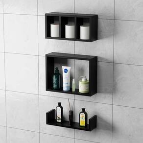 O Kit 3 Peças Nicho Prateleira para Banheiro Preto 40 x 12cm é a escolha perfeita para quem busca criatividade e organização de espaço no banheiro.