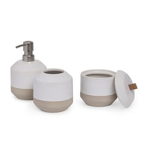 Adicione charme e organização ao seu banheiro com este kit em cerâmica, desenvolvido para quem busca um visual moderno e aconchegante. Com acabamento elegante em duas tonalidades, as peças oferecem durabilidade, praticidade e um toque decorativo que valoriza qualquer ambiente.
