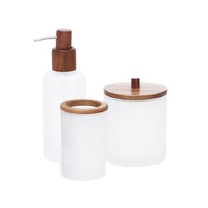 Transforme seu banheiro com este kit sofisticado em vidro fosco, ideal para quem busca organização com design moderno. As peças combinam transparência suave com detalhes em madeira, criando um visual clean e acolhedor para qualquer estilo de decoração.