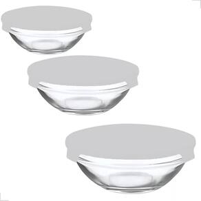 Kit 3 Peças - Potes Vasilhas Vidro Tampa Marmita FitnnesTampas de plástico com cores vibrantes:    Cores modernas (rosa, cinza e azul) que alegram sua cozinha e facilitam a organização.    Vedação prática que ajuda a manter os alimentos frescos por mais tempo (atenção: a vedação não é 100% hermética, ideal para alimentos que não necessitam de vedação total).