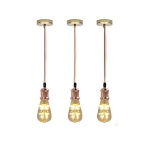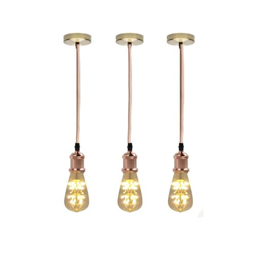 Kit 3 luminária pendente soquete bocal e27 com lâmpada led vintage formato pêra luz amarela Cor: rose gold Kit 3 pendentes retro fio vintage com três lâmpadas formato pera
