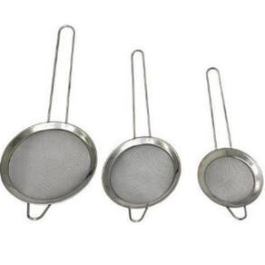 Kit 3 Peneiras Inox Coar Chá Suco Stainless Steel Sieve Kit Peneiras de Metal 3 Peças Excelente peneira de fácil utilização, esta peneira é fabricada em metal, material refinado de alta qualidade. Uma peça ideal para peneirar com segurança e te auxiliar na cozinha, invista e aproveite os diferentes utensílios de cozinha essenciais e versáteis, eles completam a casa e facilitam o seu dia a dia, Características: Metal anti ferrugem Material de fácil lavagem Dimensões: Medida: 8cm x 21cm / 10cm x 23cm / 12cm x 27cm Itens inclusos: 3 Peneiras de Metal Marca: Não Informado Ean: 7423274161346