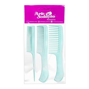 Os pentes de plástico possuem diversos usos e são indicados para pentear e desembaraçar cabelos molhados por serem resistentes, de fácil secagem e evitarem a proliferação de bactérias. São inclusos 3 pentes de diferentes tamanhos e espaçamento entre os dentes, sendo eles pequeno, médio e grande. Os pentes com pouco espaço entre os dentes são indicados para cabelos lisos devido a maior proximidade com os fios que faz com que eles sejam esticados. Já os de maior espaçamento, são indicados para cabelos ondulados os deixando com movimento e aparência natural e para cacheados e crespos facilitando o desembaraçar sem danificar os cachos.