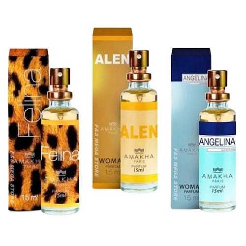 Conteúdo do kit 1 perfume feminino felina 15ml.1 perfume feminino alen 15ml.1 perfume feminino angelina 15ml. Descrição do produto Kit contendo 3 perfumes de 15ml Amakha paris, as fragrâncias são enviadas de acordo com anuncio, mas damos a opção de escolher ou trocar qualquer um deles entre as fragrâncias masculinas ou femininas disponiveis em estoque, consulte o nosso estoque caso tenha interesse em alguma troca, caso não escolha as fragrâncias assim que efetuar a compra enviamos as fragrâncias de acordo com anuncio, então pedimos a compreensão que seja encaminhado uma mensagem solicitando qualquer tipo de escolha ou troca ate 30 minutos após a compra. Características - quantidade: 15ml cada.- tipos de concentração: parfum.- altamente concentrado.- 33% de essência fixação de 24 hrs rende de 200 a 220 borrifadas de acordo com o fabricante .- nano tecnologia até 24 horas de fixação na pele .- produto com certificado na anvisa.Produto fabricado com exclusividade amakha parisCnpj 28.707.475/0001-31Processo 25351.752511/2018-99 Trabalhamos com todo a linha de produtos amakha paris, montamos kits personalizados com condições especiais, caso tenham qualquer duvida podem entrar em contato no campo de perguntas que teremos o maior prazer em atende-los, ficamos a disposição Conheça a marca amakha paris A amakha paris é uma empresa que se destaca no universo de cosméticos e perfumaria, além de ter produtos de bem-estar e saúde. Nós possuímos um amplo portfólio com mais de 400 itens abrangendo diferentes gostos e estilos. Contamos com profissionais qualificados que trabalham de forma incansável para que você tenha em mãos os melhores produtos, tudo isso com muita dedicação, carinho e estudo técnico para garantir os melhores cosméticos, perfumes, maquiagens e nutracêuticos do brasil. Imagens meramente ilustrativas