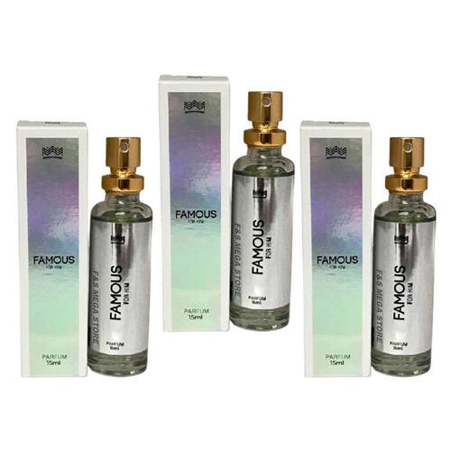 Conteúdo do kit 3 perfume masculino famous for him 15ml. Descrição do produto Kit contendo 3 perfumes de 15ml Amakha paris, as fragrâncias são enviadas de acordo com anuncio, mas damos a opção de escolher ou trocar qualquer um deles entre as fragrâncias masculinas ou femininas disponiveis em estoque, consulte o nosso estoque caso tenha interesse em alguma troca, caso não escolha as fragrâncias assim que efetuar a compra enviamos as fragrâncias de acordo com anuncio, então pedimos a compreensão que seja encaminhado uma mensagem solicitando qualquer tipo de escolha ou troca ate 30 minutos após a compra. Características - quantidade: 15ml cada.- tipos de concentração: parfum.- altamente concentrado.- 33% de essência fixação de 24 hrs rende de 200 a 220 borrifadas de acordo com o fabricante .- nano tecnologia até 24 horas de fixação na pele .- produto com certificado na anvisa.Produto fabricado com exclusividade amakha parisCnpj 28.707.475/0001-31Processo 25351.164533/2023-64 Trabalhamos com todo a linha de produtos amakha paris, montamos kits personalizados com condições especiais, caso tenham qualquer duvida podem entrar em contato no campo de perguntas que teremos o maior prazer em atende-los, ficamos a disposição Conheça a marca amakha paris A amakha paris é uma empresa que se destaca no universo de cosméticos e perfumaria, além de ter produtos de bem-estar e saúde. Nós possuímos um amplo portfólio com mais de 400 itens abrangendo diferentes gostos e estilos. Contamos com profissionais qualificados que trabalham de forma incansável para que você tenha em mãos os melhores produtos, tudo isso com muita dedicação, carinho e estudo técnico para garantir os melhores cosméticos, perfumes, maquiagens e nutracêuticos do brasil. Imagens meramente ilustrativas
