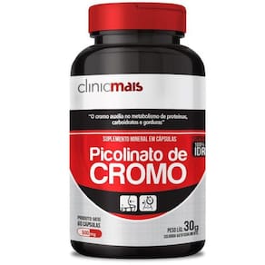 Kit 3 picolinato de cromo 500mg clinicmais 60 cápsulas ingredientes: cromo picolinato de cromo . Excipiente: amido. Antiumectante: dióxido de silício. Composição da cápsula: gelatina, opacificante inorgânico dióxido de titânio. não contém glúten. Recomendações de uso Indicação: indivíduos com idade maior ou igual a 19 anos. Sugestão de consumo: ingerir 1 cápsula ao dia. Este produto não é um . Não exceder a recomendação diária de consumo indicada na embalagem. Mantenha fora do alcance de crianças. Marca: Não Informado Ean: 7908609542712