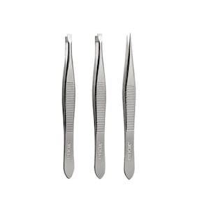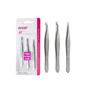 Kit com três pinças essenciais: ponta reta, dupla e fina. Enox Trio de Pinças é ideal para remoção de todos os tipos de pelo com praticidade.