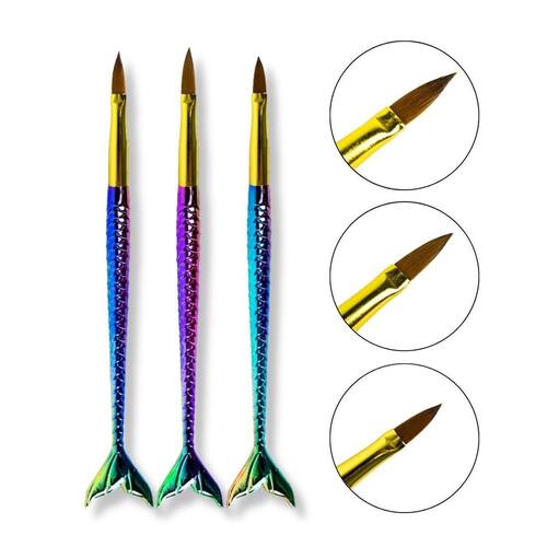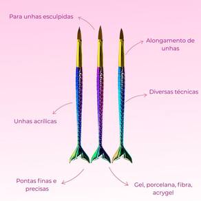 Kit 3 Pincéis Sereia Alongamento Unha Nail Design Porcelana