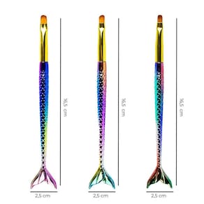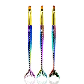 Nosso Kit Pincéis Sereia para Manicures, foi projetado com materiais de alta qualidade, cerdas macias e precisas. Desenvolvidos para decoração de unhas e alongamentos como de gel, acrílico e porcelana. Permitem a criação de lindos desenhos, modelos, formas e pinturas artísticas, em unhas naturais ou artificiais. Indispensáveis em seu studio e salão Seu maior diferencial são seus cabos, que além de um design lindo, possui relevo nas escamas oque não permite que escorreguem das mãos e sejam confortáveis de segurar por muito tempo. O formato língua de gato em 3 espessuras diferentes te acompanha em vários processos, como aplicação de material, criação de degradê, acabamentos finos e diversas decorações